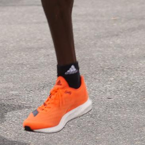但仔细一看,Festus Talam 脚下的鞋子与耐克跑马神器4%长的很像,同样鲜红的配色,同样全掌泡棉的大弟,但不同的是,Festus Talam的鞋子带上了阿迪达斯经典的三道杠,疑似是阿迪还未发布的新鞋。