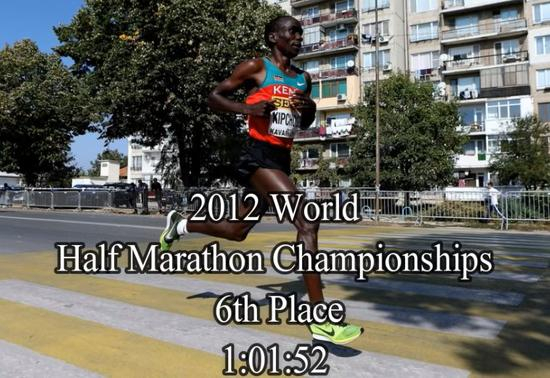 之后,基普乔格参加了2012年保加利亚卡瓦尔巴举行的国际田联世界半程马拉松锦标赛,当时,前半马纪录保持者塔德塞以1小时19秒夺冠,基普乔格仅以1小时01分52秒排名第六。