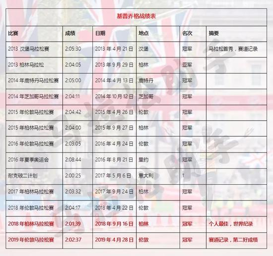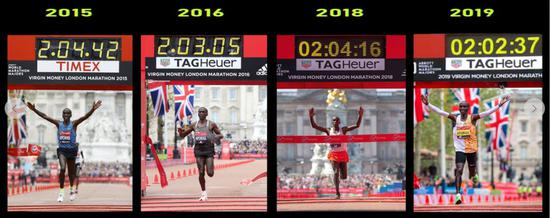 2019年4月28日。基普乔格。2小时02分37秒。马拉松世界第二好成绩。伦敦马拉松四冠王。马拉松正式比赛12战11胜。