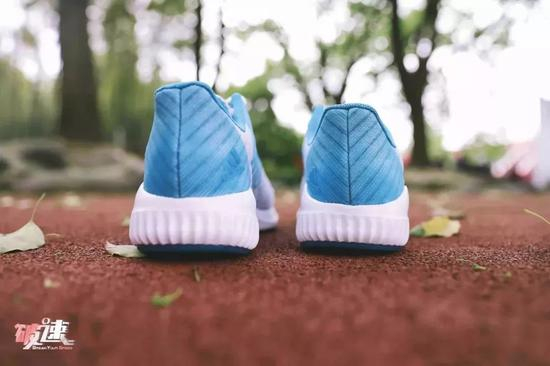 鞋面的后跟处同样增加了TPU材料,内侧还印有一个蓝色的阿迪达斯logo,内衬做了加厚的设计,里面增加了一块大面积的稳定片,让舒适性与稳定性兼具。