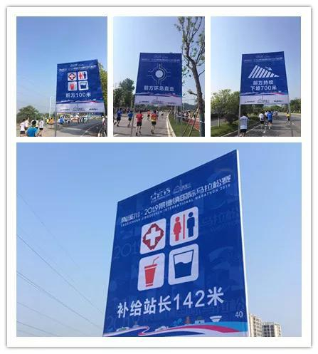 而在赛道上,我观察到,所有的补给站、医疗站、计时站前方100米百分百就提前布置了指示牌。补给站有什么、环岛如何直行、前方有多长的上坡或下坡,标识一目了然!
