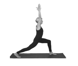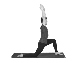 从低位弓步式开始,双臂上举过头顶。脚后跟后推,重复伸直后腿,后腿的大腿内侧朝上转动。
