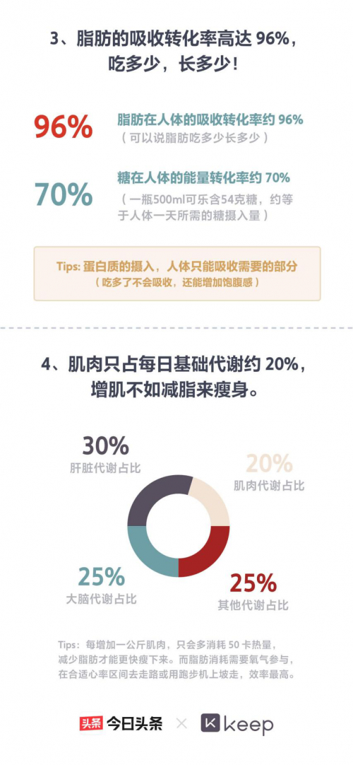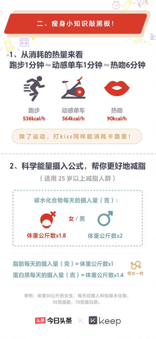 除了通过数据解析当代年轻人运动图鉴,Keep还联手今曰头条分享了一些有趣的瘦身知识。