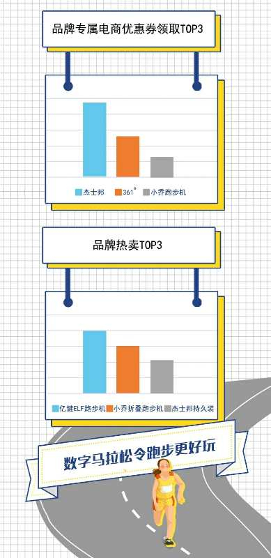 用户参加“兰马大富翁”,享受线上比赛乐趣的同时,还能在每个站点能享受到各种电商福利。有意思的是,在整个互动玩法发放的品牌专属电商优惠券中,约三分之一的人都选择了领取杰士邦的优惠券。对于近些年越来越频繁地参与到体育营销战场的杰士邦来说,“兰马加油站”这种电商玩法,无论在时间上还是空间上都大大延伸了营销场景,令品牌效益和销售效益双双得利。而在活动热卖的商品中,最受欢迎的是千元的折叠跑步机,如亿健精灵ELF跑步机家用款、小乔Q2S减震家用跑步机,都成为跑马运动人群的消费新宠,超过运动登山鞋等商品。