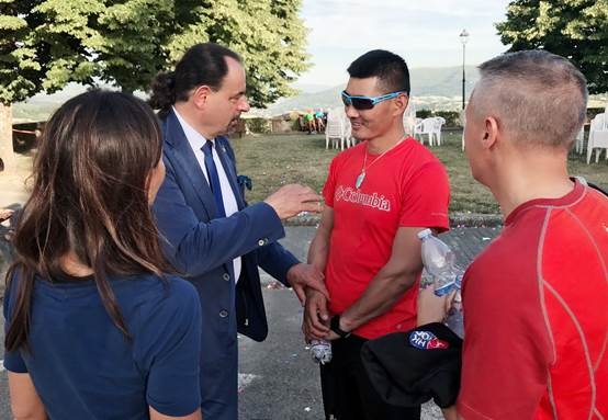 世锦赛是世界各国越野跑者的盛会,也是展示各国越野跑健儿风采的重要场合。第一次参加ITRA年度大会和世锦赛的于雷也是中国大陆越野跑者首次参会和参赛。在开幕式现场,经NG Janet介绍,于雷与ITRA官员、意大利越野跑协会主席见面,当他得知于雷在2016年连续完成UTMB、4KVDA和TDG,在10.5天的时间内跑完850公里、爬升6万米的比赛时惊讶的连声称赞:这是世界奇迹!你是最强大的中国人!