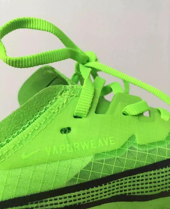 鞋面很薄,能透光,摸着有冰凉感,像鱼皮。据悉,这是首次采用了Vapor Weave材料。