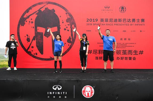 7月6日,2019英菲尼迪斯巴达勇士竞速赛成都站在双流空港花田上演,共有来自全球各地的超过3500勇士完成了自我挑战。这是斯巴达勇士赛首次在西南地区上演,作为斯巴达勇士赛呼声颇高的举办地之一,成都站迎来了众多西南地区热爱运动及挑战的时尚男女的加入,最终经过激烈争夺,来自中国的牛智明凭借00:30:48的成绩获得男子精英组冠军,女子精英组冠军则被来自中国的陈兴凭借00:51:55摘得。精英组男子亚军与季军分别是代龙省和Ian Deeth,精英组女子亚军及季军分别是张浩和岑武优。