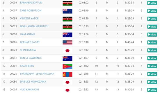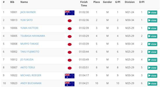 另一位日本知名跑者川内优辉,今天发挥一般,但也跑出了2小时15分32秒的成绩,澳大利亚本土跑者也不乏高手,全马3位跑进2小时15分,半马3位跑进65分。