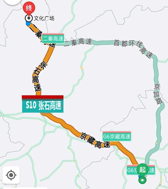 一、北京—G6京藏高速—S10张石高速—二秦高速