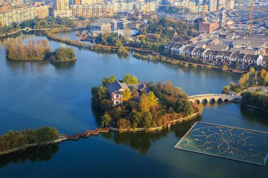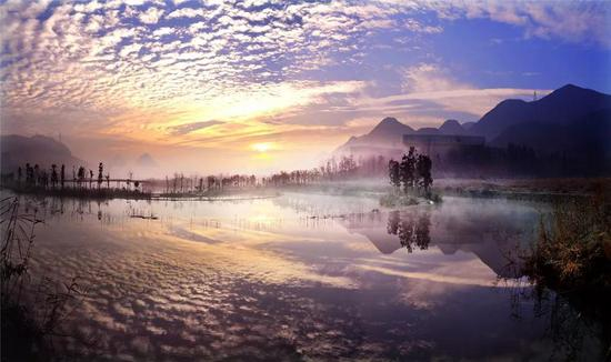 水城古镇紧邻着的凤池公园,则是六盘水“三池、三湖”中的一池。以玉带桥把湖面分成了东西湖,西湖被称为“情侣湖”,东湖则叫“鸳鸯湖”,湖中间有“凤池书院”,悠然自得古韵怡然。跑马结束后,来这儿静看湖面涟漪又能在楼台亭阁中吹吹风。