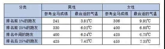 气温:研究表明不管是什么跑步能力层次的跑者,对成绩影响最大的环境因素是“气温”,且最适合跑马拉松的气温----10℃左右。