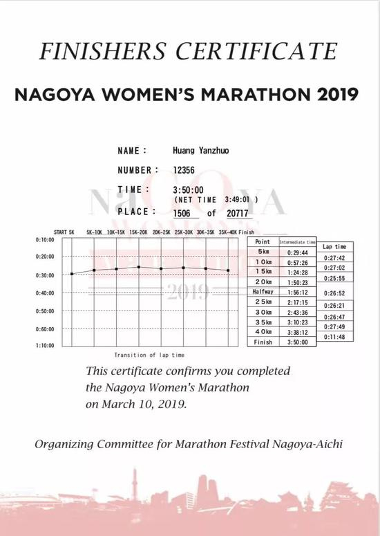 谈起马拉松,黄炎卓之前最好的成绩是太原马拉松,4小时02分。今年开始,她希望自己能有一个突破,终于在日本名古屋女子马拉松上实现了突破。