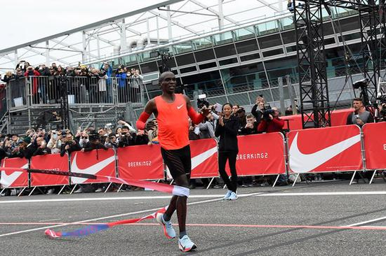 最终,肯尼亚运动员埃鲁德·基普乔格(Eliud Kipchoge)跑出2小时00分25秒的成绩。