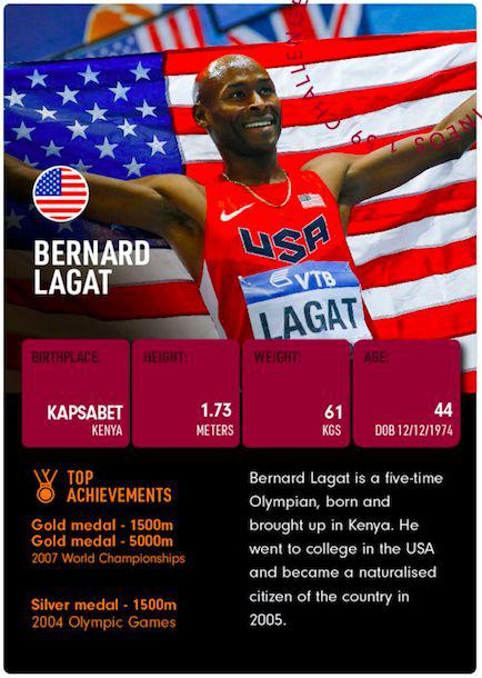 最年长的一位是伯纳德·拉加特,44岁老将。拉加特曾在Breaking2挑战中担任兔子,有上次的破2经验,相信他会在本次挑战中助力基普乔格挑战成功。