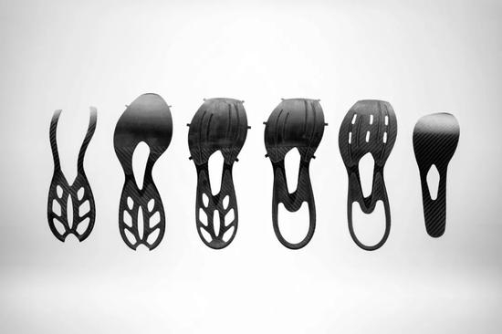 而对于这款异构碳板的结构,设计师进行了六代的演化。