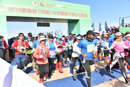 “2019腾格里(民勤)沙漠国际半程马拉松赛设有半程马拉松(21.0975公里)男子组、女子组,吸引了来自肯尼亚、埃塞俄比亚、苏丹、孟加拉国等国家和北京、上海、天津、云南等省市的1000多名运动员报名参赛。