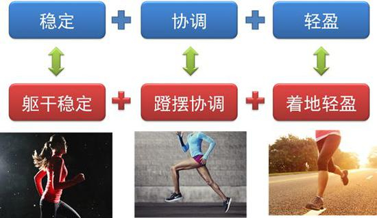 合理良好的跑步技术应当体现为跑姿稳定、协调、轻盈。