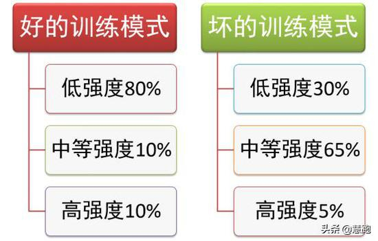 这种以大比例的低强度和小比例的高强度训练模式是最佳的。
