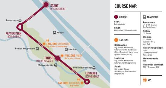 赛道路线图显示,现场专门设置了3个观众区,普通市民也可以在赛道沿线观战。考虑到普拉特公园向来是维也纳马拉松赛道的一部分,这项历史悠久的赛事一直受到当地市民的热烈欢迎,不出意外,场外热情的观众必将成为基普乔格的巨大动力。
