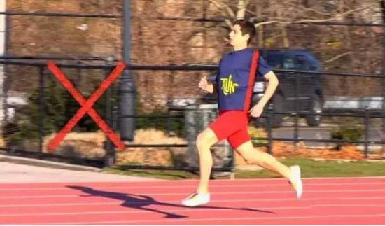 步幅过大会导致双腿体前着地,即正常人走路的跨步姿势,这往往是追求大步幅的后果,落地脚的腿或膝盖有向前顶、踢的动作;