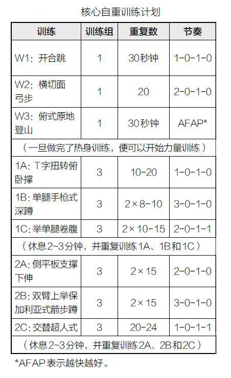 核心力量训练则如上面所说的可根据自身需要进行适当训练。此外,对于追求腹部线条的人群(不论男女)而言,除了核心区的练习之外,其他有益于减脂的运动都应该列入考虑范围,如全身力量练习和有氧练习等。