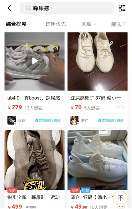 这个动作是体验“踩屎感”的标准姿势。屎可能自己都没有想到,除了屎壳郎还会有人会给它这么高的评价,就甚至还有人把sneaker(球鞋爱好收藏者)戏称为屎内克。一双鞋好像只要加上踩屎感这三个字,就是镀了一层金,一下子从无人问津的小野鸡变成了飞上枝头的凤凰,这种情况在闲鱼上颇为常见。