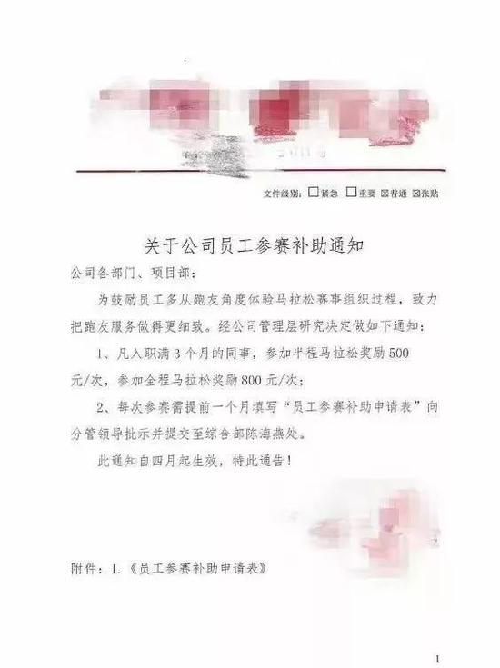 这个叫润博体育的公司,员工跑完全马奖励3000元,据说跑完半马也能够奖励2000元。