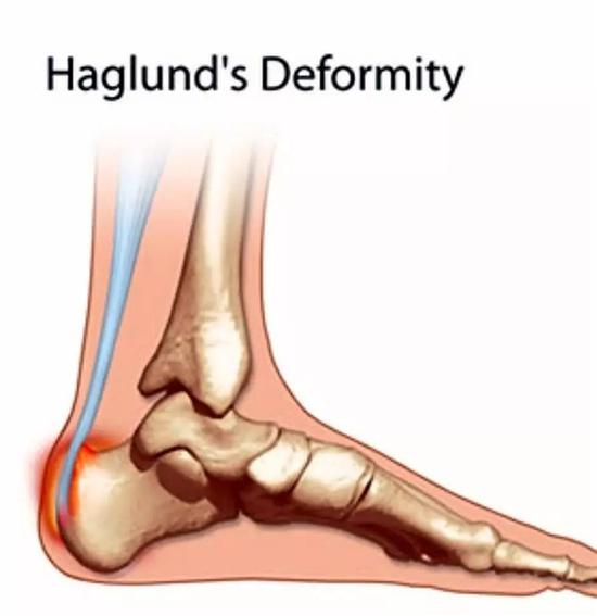 这个凸起恰恰可能与跟腱附着处产生应力集中现象以及摩擦,从而导致疼痛,这个疾病最早由帕特里克・哈格伦德(PatrickHaglund)医生于1927年发现,因此被命名为Haglund畸形。