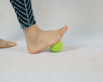 将网球放至足底,用小腿后群肌肉发力将网球压扁,而不是来回滚揉网球。