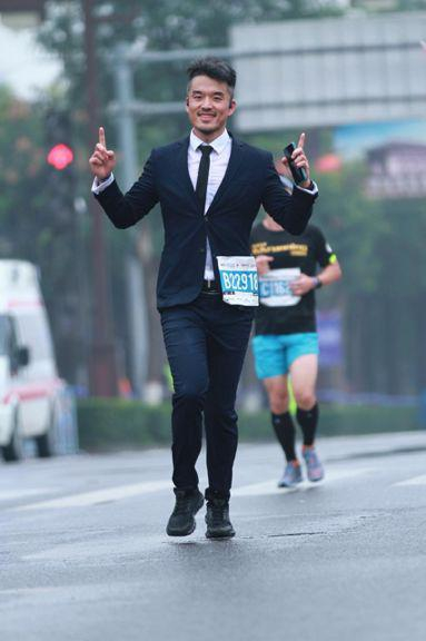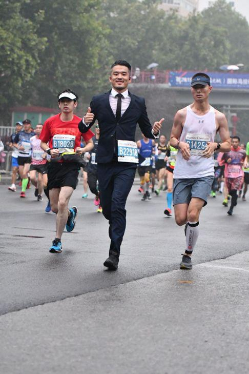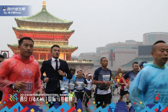 穿西装雨战西安马拉松 跑进四小时是种怎样的体验
