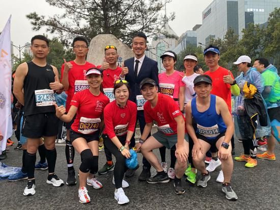 比赛前夜发完定装照,关手机睡觉,比赛日一早已经收到很多朋友的鼓励,吃完早餐,深呼吸片刻,换装,别好号码簿,撸好油头,战战兢兢,还有点羞赧的走到酒店大厅,住在酒店的NoNo跑班的小伙伴们看到我,一下子全部围到我身边开始拍照,极大的满足了我的虚荣心。