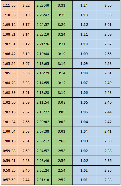 下表非常重要,不同水平的跑者就可以根据这个表找到适合自己的间歇跑配速了。
