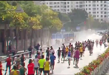 图说:上马赛道上设置的喷淋点。