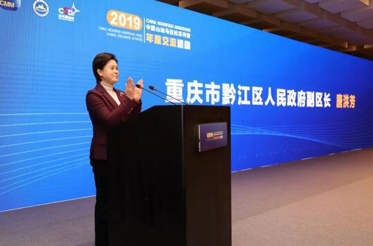 重庆市黔江区政府副区长唐洪芳为本次年度交流活动致辞:“在全市上下深入贯彻落实党的十九届四中全会精神之际,我们迎来了2019中国山地马拉松系列赛年度交流会在清新黔江隆重举行。”