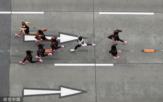 10月13日,肯尼亚女子选手科斯盖穿着和基普乔格“破2”时一样的跑鞋,将女子马拉松世界纪录提高了1分21秒。