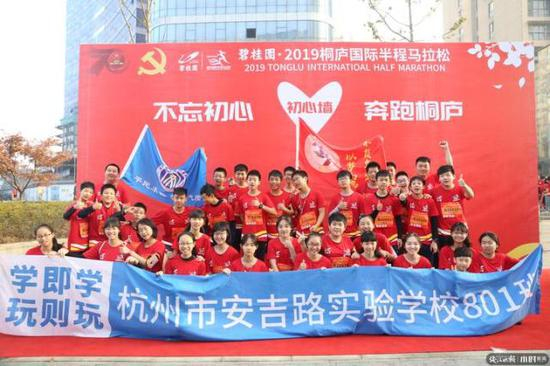 11月24日,2019桐庐国际半程马拉松在美丽的富春江畔举行。当天的这场运动盛会共吸引了6000多名跑步爱好者参加,其中有一个特殊的群体要跟大家介绍一下——杭州市安吉路实验学校801班。801班32名学生(有几名学生因为身体原因缺席),加上体育老师班主任厉亮亮和10几位家长组成了一个“跑团”,并成功完成了桐庐国际半程马拉松10公里健身跑。