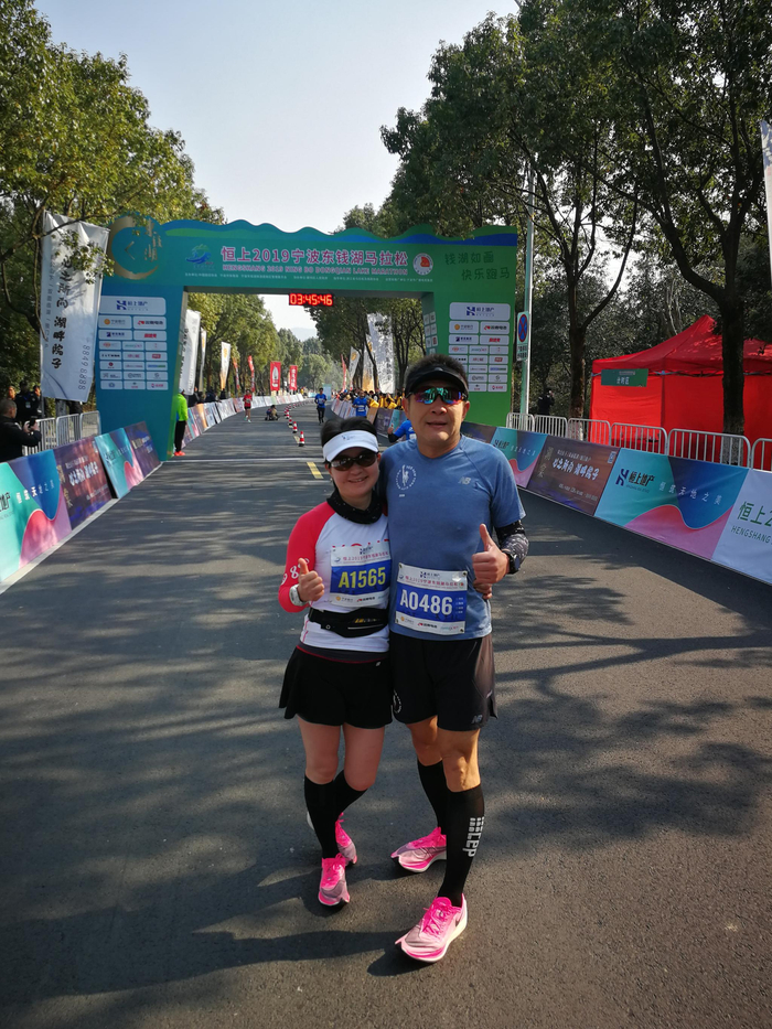 两位来自北京的夫妻因为没有报上广州马拉松,无意间了解到东钱湖马拉松的报名信息,就报名来东钱湖参赛,全马跑完两人在终点合影,告诉笔者不虚此行,他们表示东钱湖马拉松是“全景马拉松”,值得再来跑。