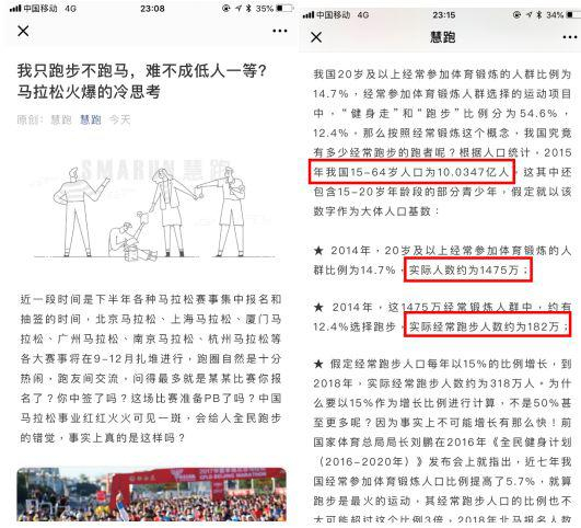 作为一个以理性为主要特征的跑步自媒体,慧跑一直秉承科学、客观的态度看待跑步,服务大众跑者。昨天的文章《我只跑步不跑马,难不成低人一等?马拉松火爆的冷思考》有跑者指出我们计算出现失误,造成数字错误。