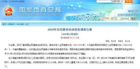 事实上目前关于中国究竟有多少跑者并无官方权威的专门调查,能查到的最权威、最新的大数据就是国家体育总局发布的《2014年全民健身活动状况调查公报》。