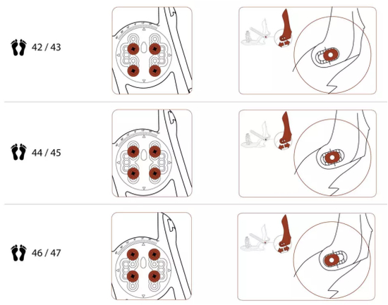 和学习滑雪一样,快速穿脱也需要学习和适应的时间,建议在平地上尝试 5-10 次穿脱及多次带板单脚滑行,可以快速适应本产品;
