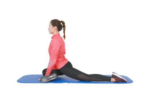 也可采用单膝跪于瑜伽垫姿势进行大腿内侧拉伸。