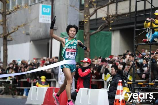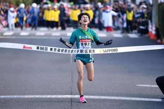 十区选手汤原慶吾率先冲过终点线,青山学院最终以10小时45分23秒的总成绩,成功夺得第96届箱根驿传总冠军,重回箱根王位!