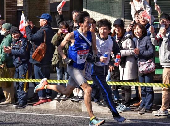 明治大学阿部弘辉以1小时01分40秒的成绩,每公里配速2分53秒,打破七区区间纪录。