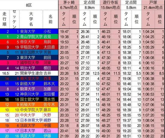 在后面三个区间东海大学皆为四年级,照此进行下去,东海大学极有可能复制去年壮举,在八区小松阳平完成反超,完成卫冕之路。