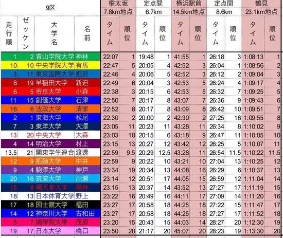 青山学院神林勇太以1小时08分13秒的佳绩取得区间赏,再度与东海大学拉开差距。青山学院十区选手只要不出现意外,冠军将会被青山学院收入囊中。