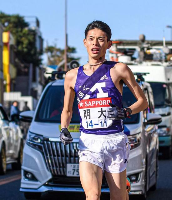 明治大学阿部弘辉以1小时01分40秒,每公里配速2分53秒,打破七区区间纪录。