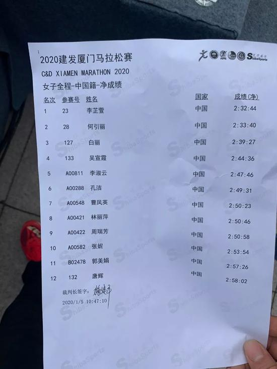 4天后的厦门马拉松,吴宣霞跑了2小时44分36秒的成绩,距离个人PB只差32秒,去年11月锡山宛山湖马拉松跑得2小时44分02秒。