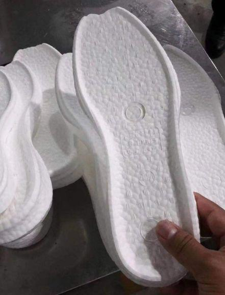 成型之后就变成鞋底的样子,其实目前国内很多化工厂都可以将TPU生产出Boost爆米花,并且与德国巴斯夫原产的爆米花几乎没有区别。