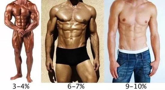 17%~19%全身各部位脂肪不松弛,腹肌分块明显。