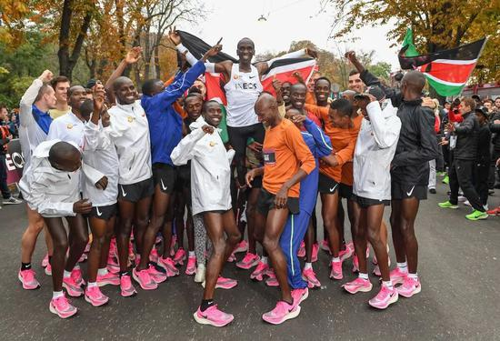 10月12日,万众瞩目的159挑战在维也纳启动,基普乔格终以1小时59分40秒完成挑战,带领人类迈进马拉松2小时的门槛。